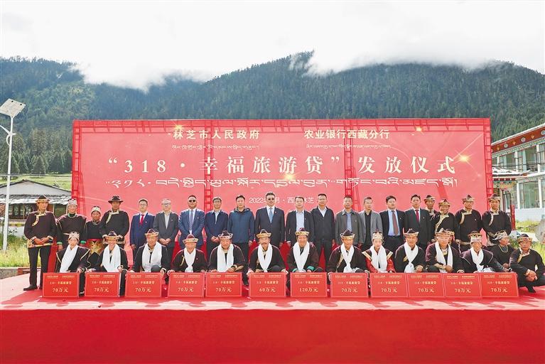 農(nóng)行林芝分行聯(lián)合林芝市旅游發(fā)展局創(chuàng)新推出“318·幸福旅游貸”,這是發(fā)放儀式現(xiàn)場。