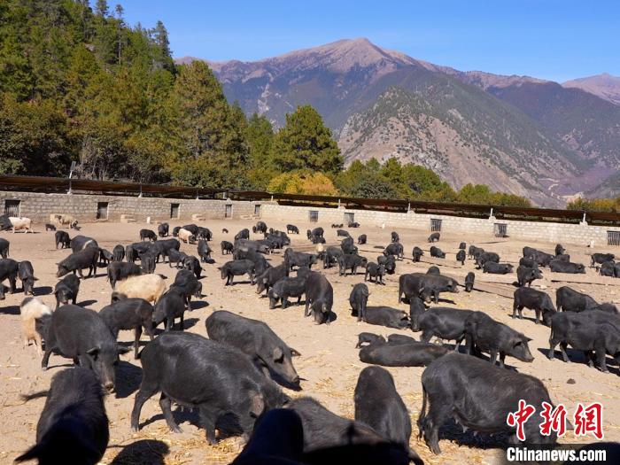 圖為養(yǎng)殖基地里的藏香豬。鄧海平 攝