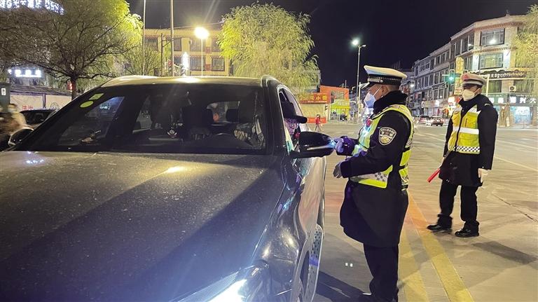 拉薩冬日的夜晚寒風(fēng)凜冽。夜色中,一輛輛汽車(chē)有序通行,街道又恢復(fù)了往日的熱鬧。當(dāng)天晚上9時(shí)許,記者跟隨拉薩市公安局交警支隊(duì)執(zhí)法監(jiān)督大隊(duì)民警前往江蘇大道,城南大隊(duì)的民警已經(jīng)設(shè)置好路障、標(biāo)牌,正在對(duì)過(guò)往車(chē)輛逐一進(jìn)行詳細(xì)排查?!澳茫?qǐng)出示駕照。”“您好,請(qǐng)吹氣。”在民警的指揮下,車(chē)輛有序通過(guò)檢查點(diǎn)。市民扎西多吉駕車(chē)經(jīng)過(guò)檢查點(diǎn)后告訴記者,在這么冷的天氣里,交警依然堅(jiān)守在路面上,確實(shí)令人敬佩,應(yīng)該為他們點(diǎn)贊?!拔視?huì)牢記‘開(kāi)車(chē)不喝酒,喝酒不開(kāi)車(chē)’,也會(huì)自覺(jué)遵守交通法律法規(guī),文明出行?!痹鞫嗉f(shuō)。