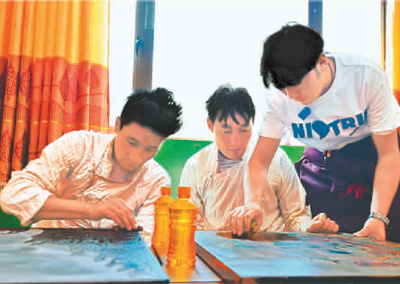 按照中組部開(kāi)展“小組團(tuán)”援藏工作的要求,福建省援藏工作隊(duì)同福建省委宣傳部、省文化和旅游廳、省藝術(shù)館和昌都市文化局組建“唐卡漆畫文化產(chǎn)業(yè)小組團(tuán)”,將福建省文化和旅游廳實(shí)施的農(nóng)民漆畫藝術(shù)精準(zhǔn)扶貧模式推廣到昌都,培養(yǎng)唐卡漆畫畫師。