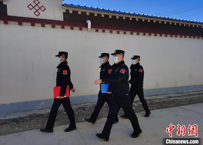 圖為普瑪江塘邊境派出所民警開展民眾走訪工作。 洛桑曲扎 攝