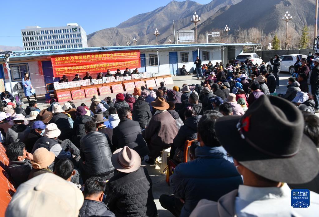 滴新村產(chǎn)業(yè)分紅儀式現(xiàn)場(2月2日攝)。新華社記者 晉美多吉 攝