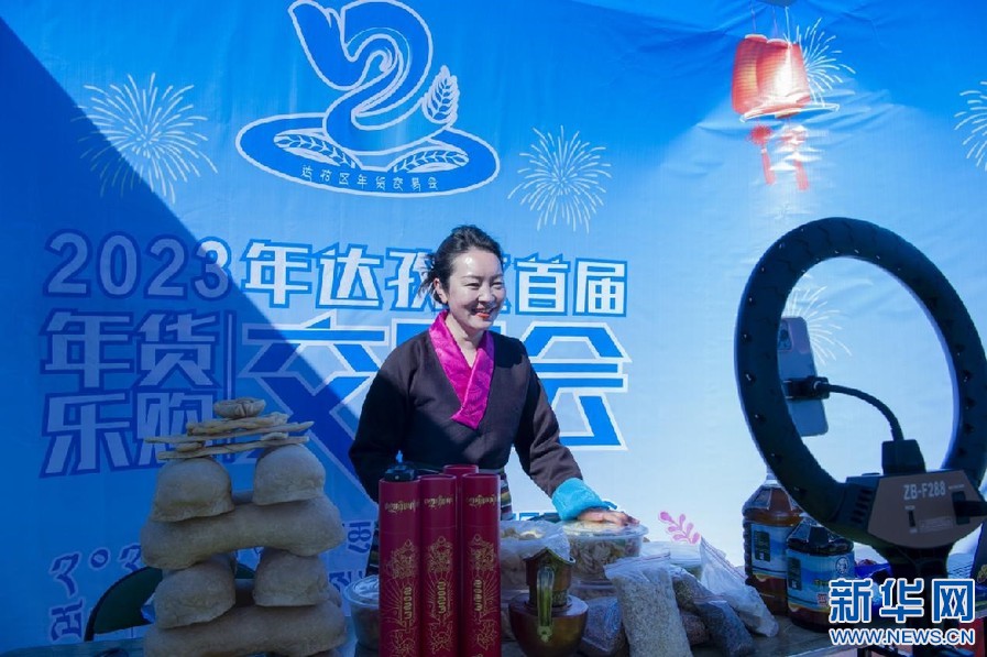 2023年達(dá)孜區(qū)首屆年貨樂購(gòu)交易會(huì)活動(dòng)現(xiàn)場(chǎng)(2月6日攝)。新華網(wǎng) 旦增努布 攝