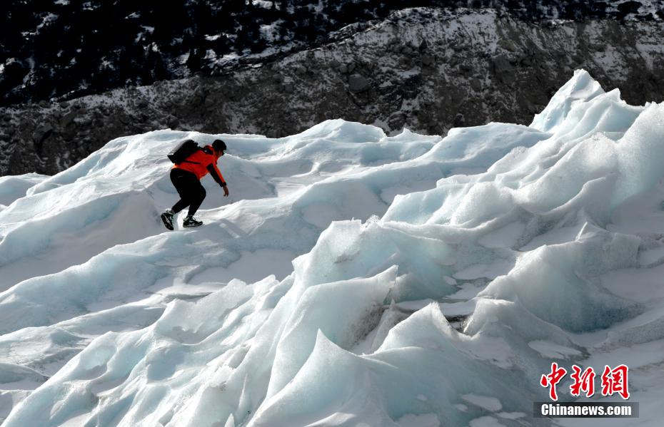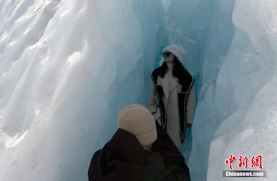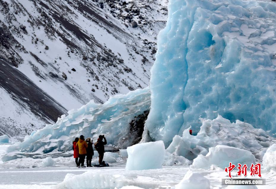 2月16日,西藏昌都來古冰川,游客拍照留念。來古冰川屬海洋性冰川,為一組冰川的統(tǒng)稱,其位于西藏昌都八宿縣然烏鎮(zhèn)境內(nèi),緊鄰然烏湖,是帕隆藏布的源頭。冬天的來古冰川有著別樣的景致,陽光照射下顯出藍(lán)色,吸引眾多游客前來觀賞。