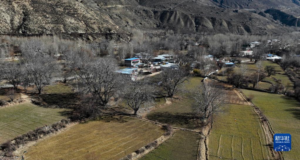 核桃樹(shù)環(huán)抱的山南市加查縣拉崗村(2月1日攝 無(wú)人機(jī)照片)。新華社記者晉美多吉 攝