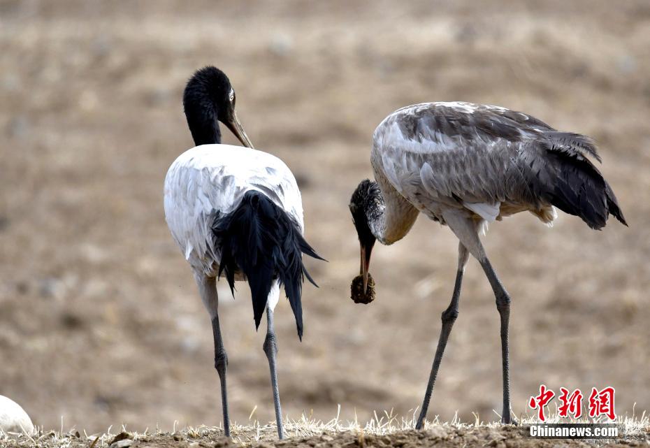 2月19日,西藏拉薩堆龍德慶區(qū)楚布溝內(nèi)的一處農(nóng)田里,一群黑頸鶴正在覓食。時下,在雅魯藏布江中游河谷一帶的農(nóng)田和水域,黑頸鶴等眾多候鳥或覓食或棲息,成為初春一抹亮麗色彩。黑頸鶴是國家一級保護動物,也是唯一生活、繁殖在高原的鶴類。在河谷地帶越冬的黑頸鶴一直要待到三四月份才會北上到藏北,開啟新的生活。