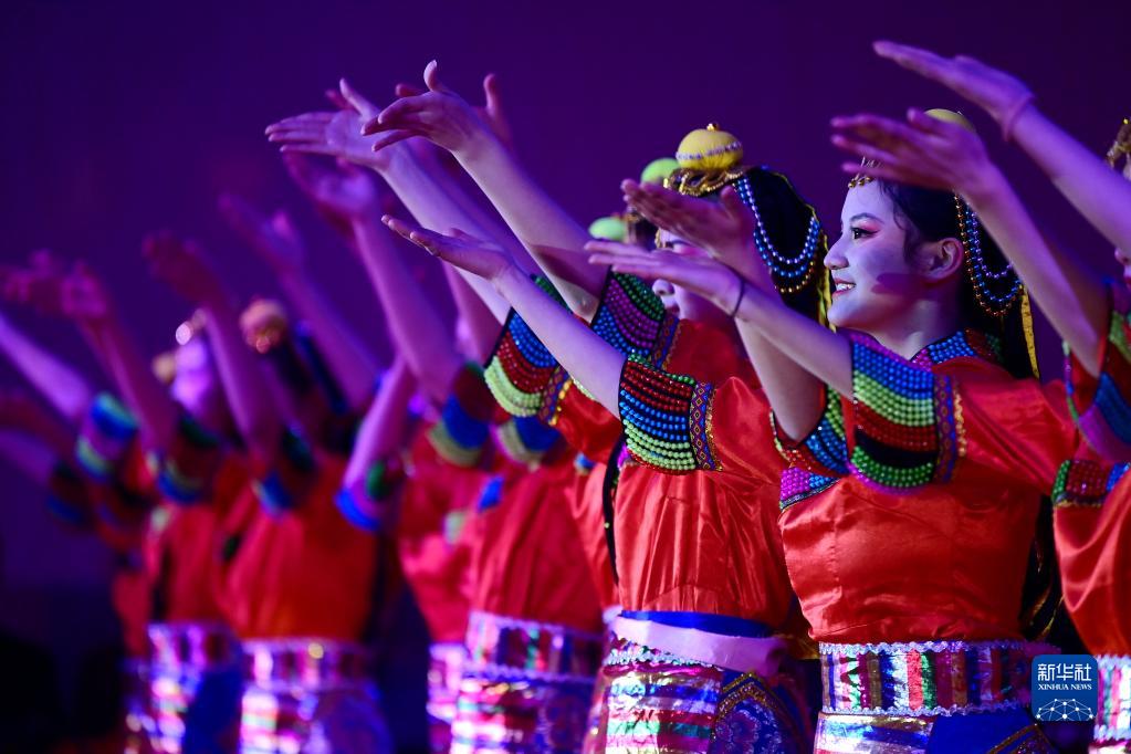 2月21日,學生在西安市浐灞第一中學舉行的藏歷新年團拜活動上表演藏族舞蹈。新華社記者 李一博 攝