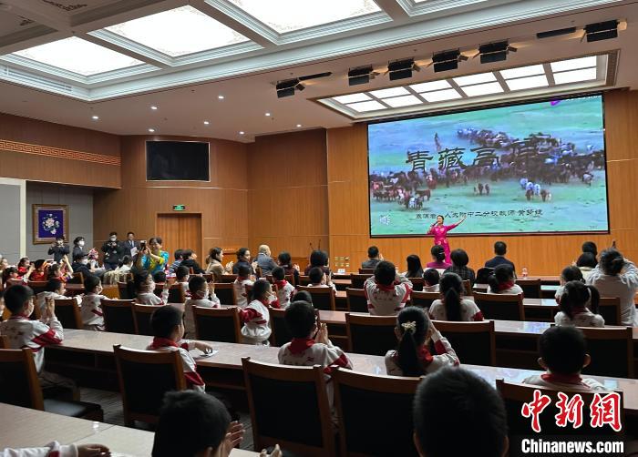 圖為活動當(dāng)天西藏文化博物館的志愿者們帶領(lǐng)小朋友參觀館內(nèi)展覽。李晗雪 攝