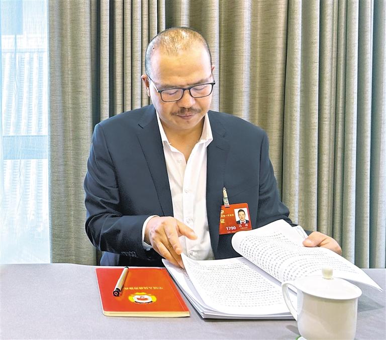 圖為3月5日,達珞參加少數(shù)民族界小組討論。
