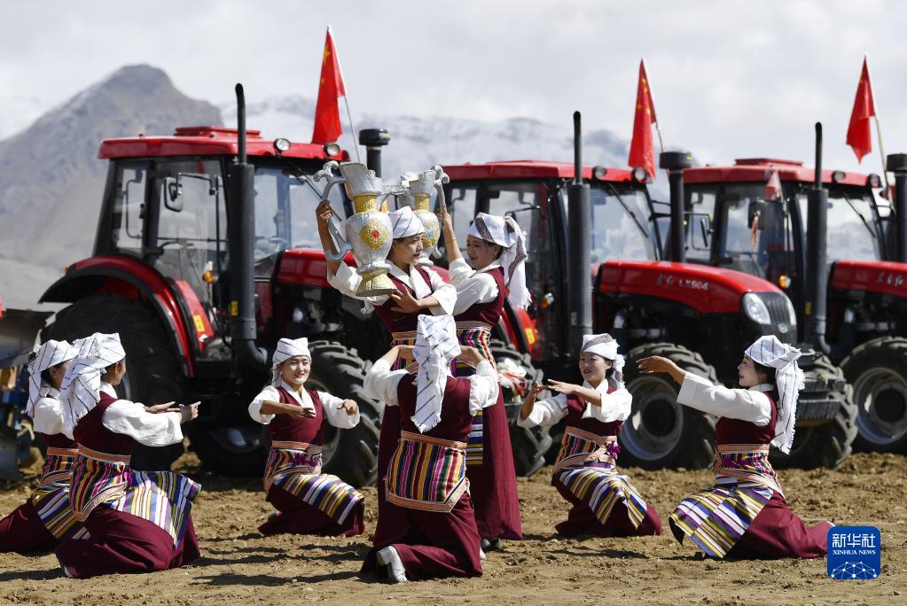 西藏拉薩市林周縣強嘎村的春耕儀式現場(3月16日攝)。新華社記者 張汝鋒 攝