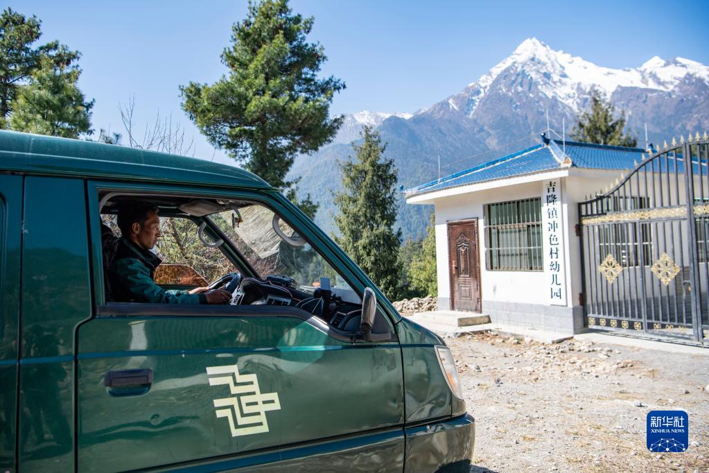 大約過(guò)了半個(gè)小時(shí),巴桑頓珠到達(dá)第一站——沖色村幼兒園。他拿起一疊捆好的報(bào)紙,放到了收發(fā)室門口。