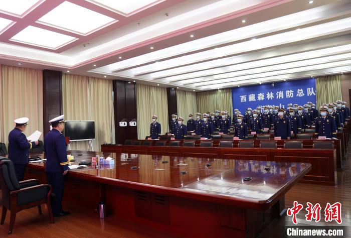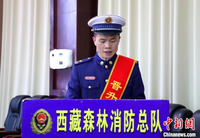 3月22日,西藏森林消防總隊政委譚程富發(fā)言。 西藏森林消防總隊供圖