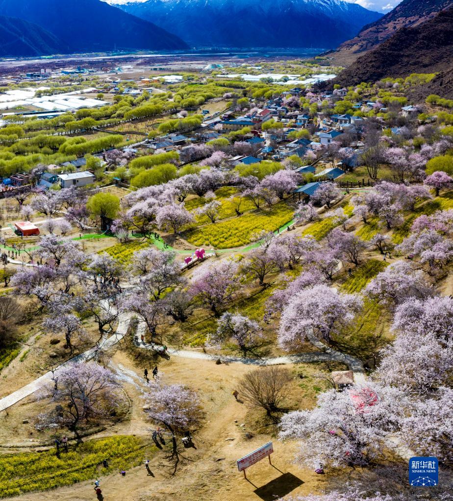 目前,西藏林芝市嘎拉村漫山遍野的桃花綻放,美麗春景引人入勝。