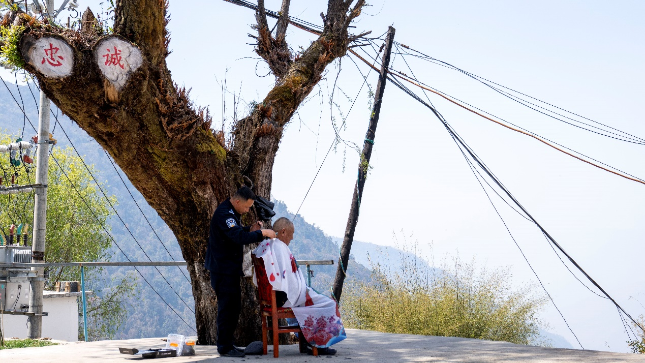 轄區(qū)村民和派出所民警關(guān)系很要好,民警日常走訪群眾時,經(jīng)常會為群眾送去罐頭、蔬菜等生活物資。就在記者采訪當(dāng)天,轄區(qū)村民次仁堅參來找民警幫忙理發(fā),“咱們警民是一家嘛,我對咱們民警的理發(fā)技術(shù)很放心!”次仁堅參笑著說。