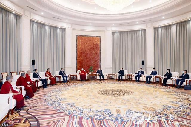 林武代表省委、省政府對(duì)班禪的到來(lái)表示熱烈歡迎,并簡(jiǎn)要介紹了山東經(jīng)濟(jì)社會(huì)發(fā)展情況。他說(shuō),山東是人口大省、經(jīng)濟(jì)大省、文化大省,當(dāng)前正深入貫徹黨的二十大精神,錨定“走在前、開新局”,堅(jiān)決打好強(qiáng)信心、穩(wěn)經(jīng)濟(jì)、促發(fā)展組合拳,經(jīng)濟(jì)呈現(xiàn)全面復(fù)蘇、加快向好的發(fā)展態(tài)勢(shì)。近年來(lái),我們?nèi)尕瀼匦聲r(shí)代黨的治藏方略,加強(qiáng)對(duì)口援藏工作,“魯藏一家親”結(jié)出累累碩果。山東是全國(guó)宗教工作重點(diǎn)省份,我們深入學(xué)習(xí)習(xí)近平總書記關(guān)于宗教工作的重要論述,全面落實(shí)黨的宗教信仰自由政策,全省宗教領(lǐng)域保持和諧穩(wěn)定的良好局面。班禪是藏傳佛教大活佛,堅(jiān)定擁護(hù)中國(guó)共產(chǎn)黨的領(lǐng)導(dǎo),為促進(jìn)藏傳佛教與社會(huì)主義社會(huì)相適應(yīng)發(fā)揮了重要作用。相信在您的帶領(lǐng)下,藏傳佛教愛國(guó)愛教、護(hù)國(guó)利民的光榮傳統(tǒng)一定能進(jìn)一步發(fā)揚(yáng)光大,更好引導(dǎo)信教群眾維護(hù)國(guó)家統(tǒng)一、民族團(tuán)結(jié)、宗教和諧。
