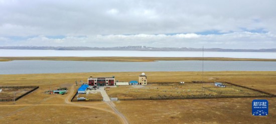 俯瞰中國科學(xué)院納木錯多圈層綜合觀測研究站(無人機(jī)照片,4月13日攝)。新華社記者 姜帆 攝