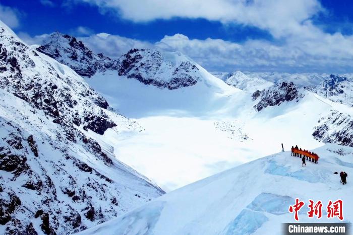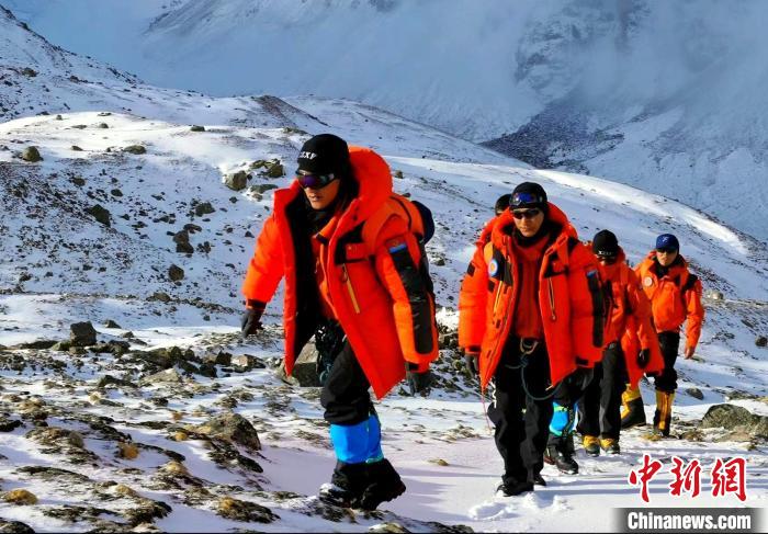 國家高山救援拉薩大隊隊員向海拔6010米洛堆峰進發(fā)?!〖馈z