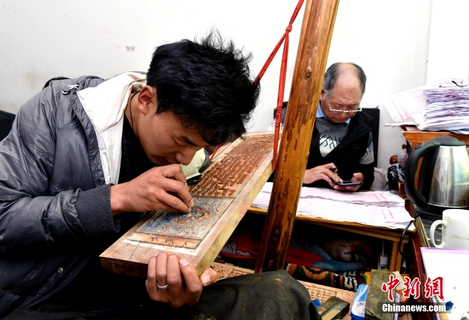 5月8日,手工藝人羅布正在西藏雪堆白技工學(xué)校里雕刻《大藏經(jīng)》。位于拉薩北郊的西藏雪堆白技工學(xué)校,通過產(chǎn)學(xué)研等教學(xué)方式保護(hù)傳承民族傳統(tǒng)手工藝術(shù)。多年來,學(xué)校培養(yǎng)了一大批優(yōu)秀的藏族傳統(tǒng)技藝人才。