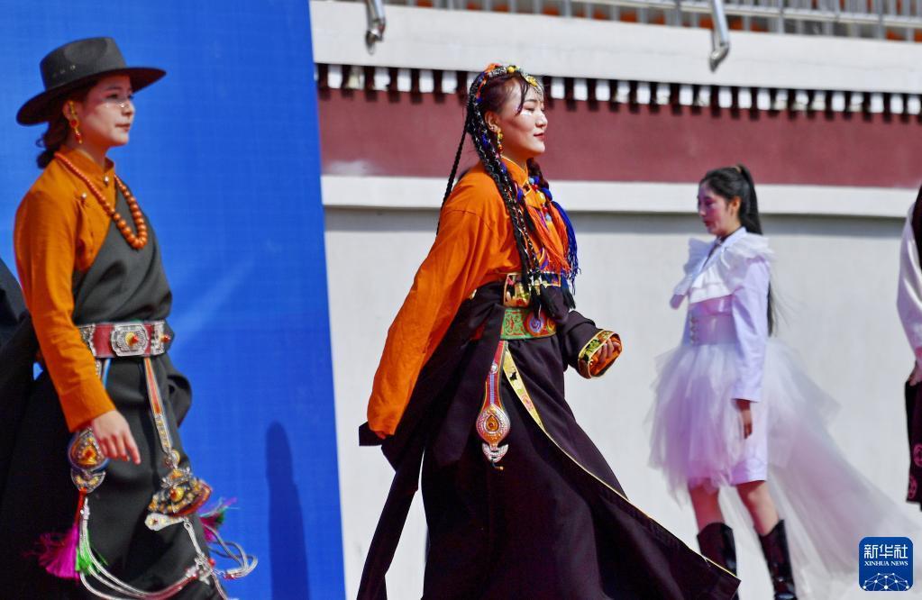 5月10日,西藏技師學院學生進行傳統(tǒng)服飾表演。新華社記者 張汝鋒 攝