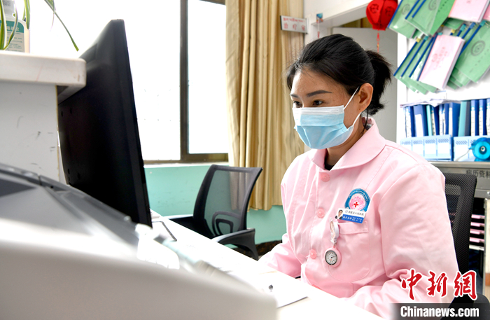 5月12日,梅朵曲珍正在電腦前工作。 中新社記者 李林 攝