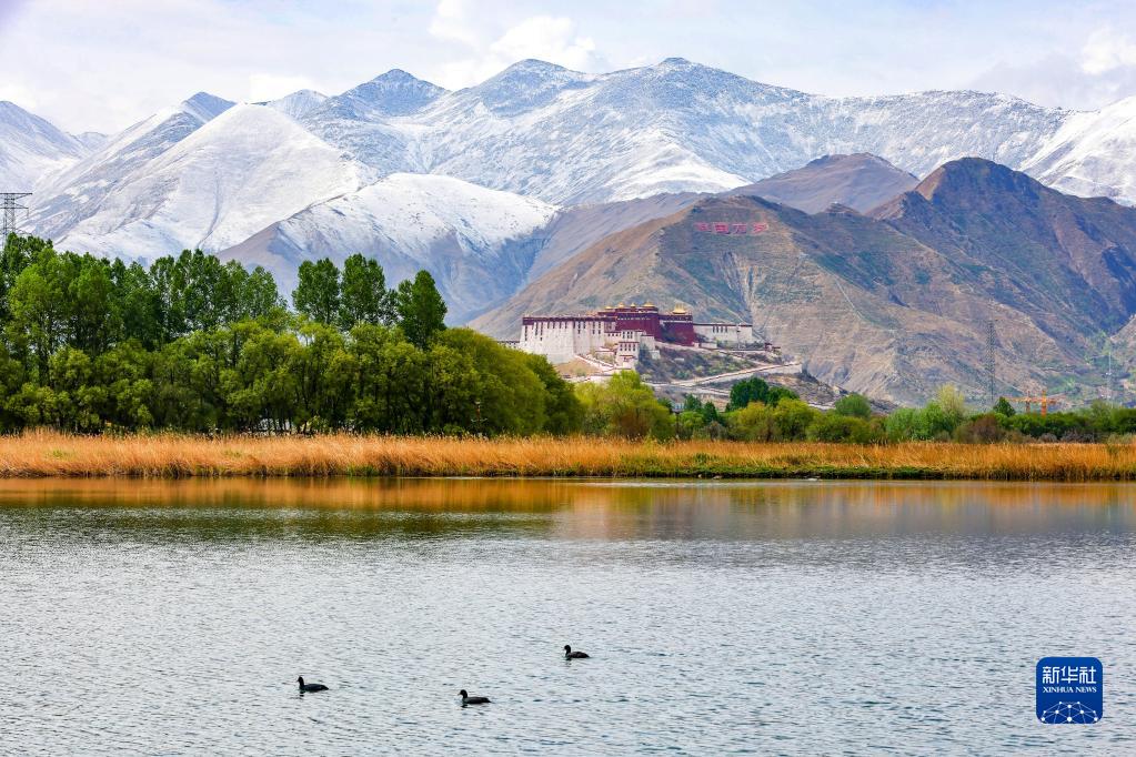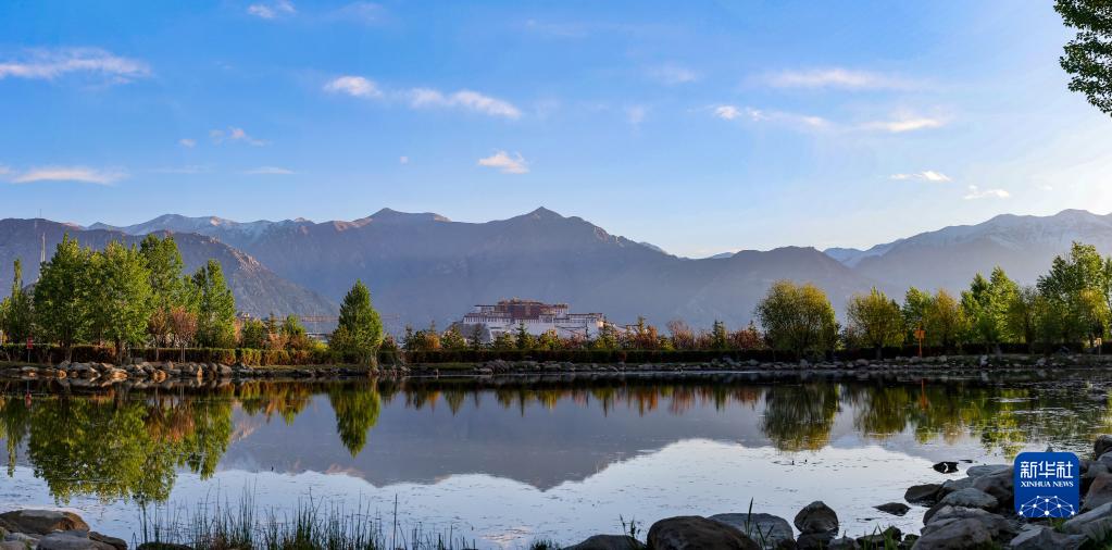 這是在拉魯濕地拍攝的拉薩風光,蔥蘢的樹木點綴在城市中,與山色相映成趣(5月12日攝)。新華社記者 姜帆 攝