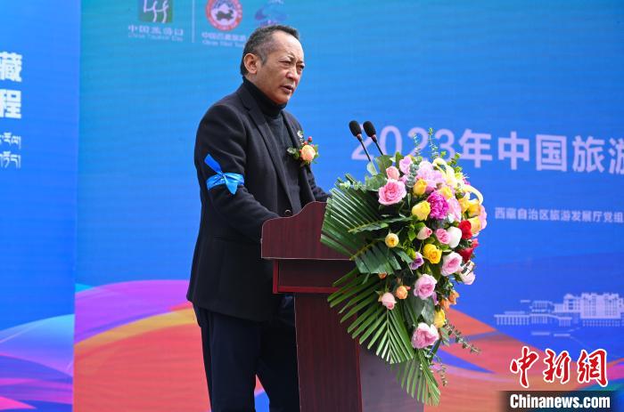 圖為西藏自治區(qū)旅游發(fā)展廳黨組成員、副廳長(zhǎng)頓珠致辭。趙朗 攝