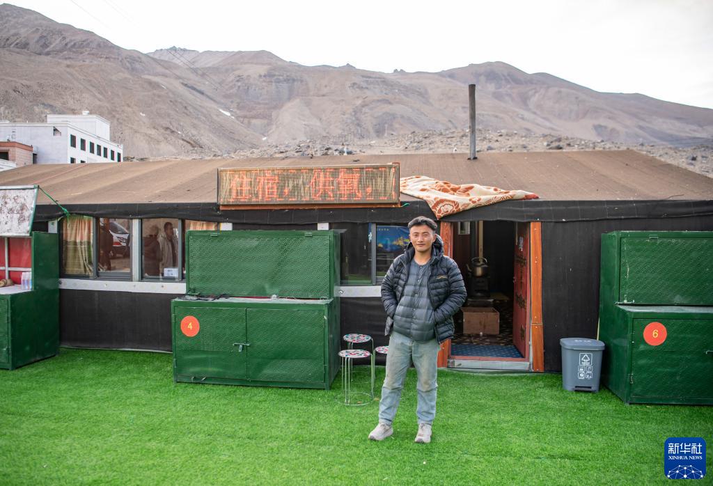 今年27歲的旦增是扎西宗鄉(xiāng)嘎熱村村民。他已在大本營(yíng)經(jīng)營(yíng)帳篷旅館近十年,“以前,游客來了只能睡大通鋪,用太陽(yáng)能板發(fā)電,用水還要從絨布河打水背過來?!钡┰稣f。