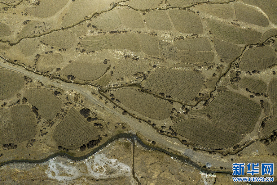 5月20日,在西藏定日縣扎西宗鄉(xiāng)境內(nèi)拍攝的農(nóng)田(無人機(jī)照片)。 新華網(wǎng) 旦增努布 攝