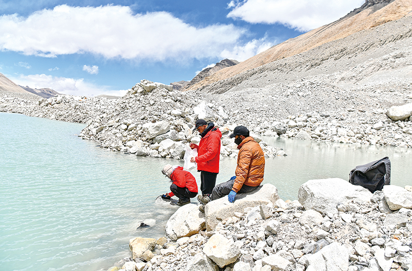 “我們沿著喜馬拉雅山脈做了很多工作,采集了2000多份樣品?!眲⒓褲M懷憧憬地說,“我們會(huì)從大本營出發(fā)努力接近海拔7000米區(qū)域,完成15個(gè)雪冰樣品和15個(gè)沙石樣品采集。希望通過一塊塊拼圖,努力還原青藏高原形成演化的‘大圖紙’。”