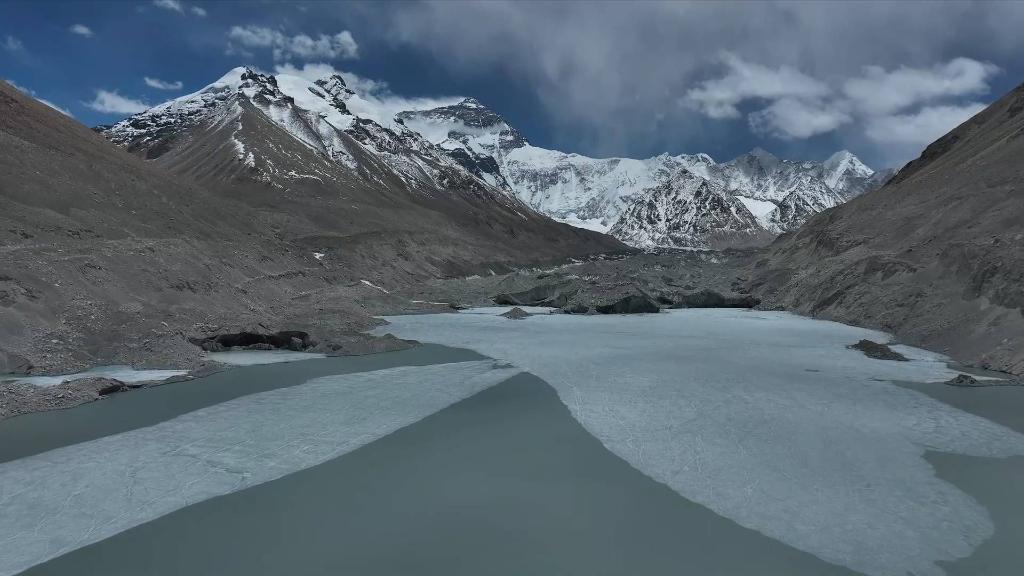 在海拔5200米的登山大本營附近的絨布河進行完檢測后,科考人員一行計劃前往約三公里外的中絨布冰川末端的冰湖,采集冰川融水樣本并檢測水質(zhì)。