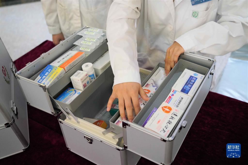5月26日,北京高原適應(yīng)研究康復(fù)中心的醫(yī)護人員在介紹隨車醫(yī)藥箱。新華社發(fā)(王靜頤攝)