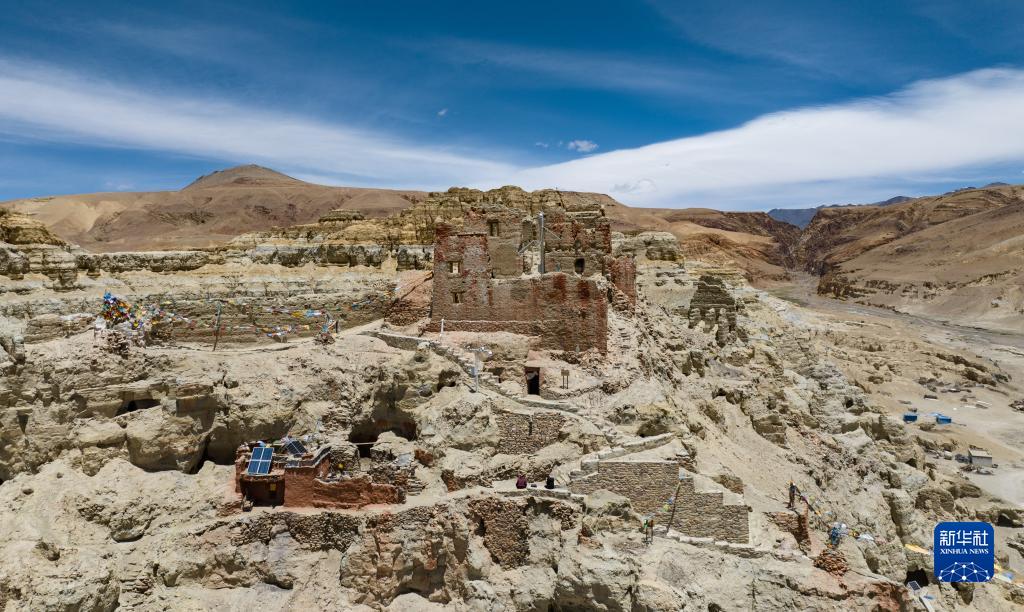 空中俯瞰皮央石窟全景(5月26日攝,無(wú)人機(jī)照片)。新華社記者 晉美多吉 攝