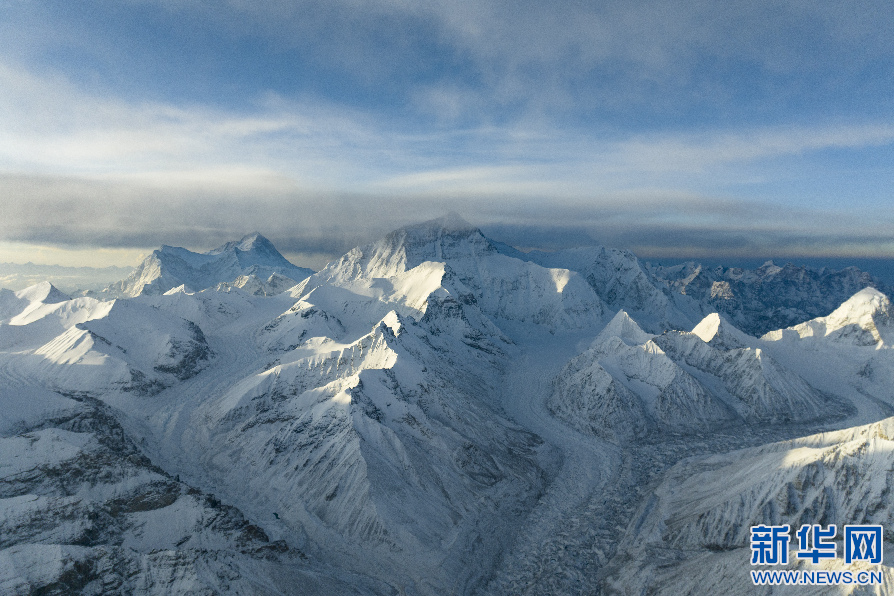 在海拔8000米左右拍攝的珠穆朗瑪峰(無人機照片)。 新華網(wǎng) 旦增努布 攝