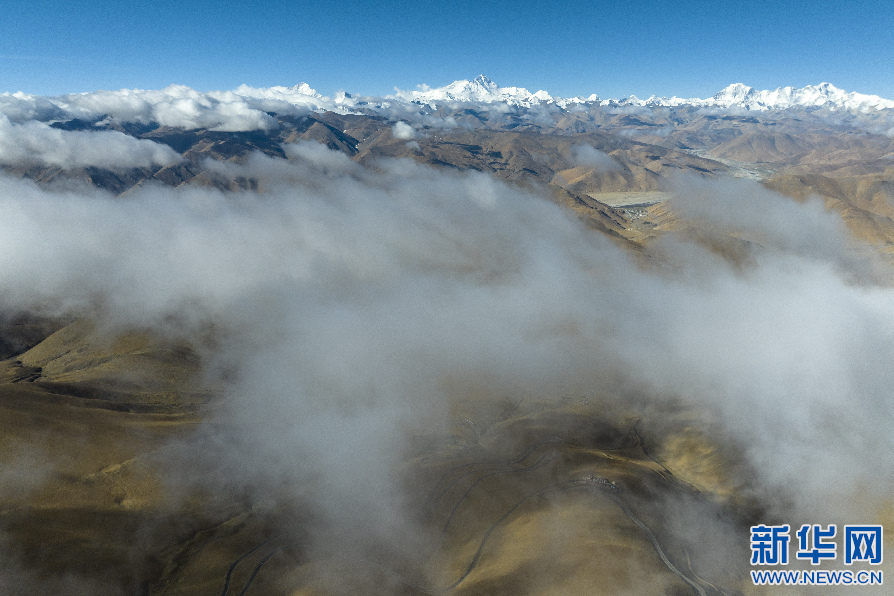 在海拔6000米左右拍攝的喜馬拉雅山脈(無人機照片)。 新華網(wǎng) 旦增努布 攝