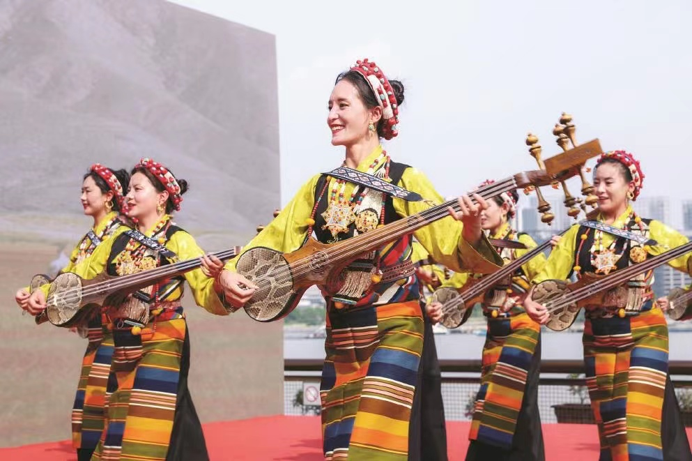 5日,由上海市援藏干部人才聯(lián)絡(luò)組拉孜小組、西藏日喀則市拉孜縣文化和旅游局主辦的“遇見|雅江情濱江意·滬藏文化交流”演出,走進(jìn)上海楊浦文化新地標(biāo)“YOUNG劇場”,悠揚的扎念琴聲、時快時慢的“踢踏”舞聲、傳統(tǒng)藏族曲調(diào)和現(xiàn)場觀眾的歡笑聲、鼓掌聲,為初夏的繽紛申城再添一抹亮色。