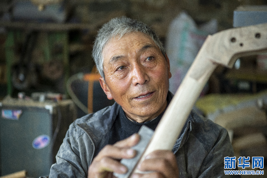 6月8日,娘嘎扎念琴制作技藝傳承人羅布次旦給兒子指導(dǎo)制作技藝。新華網(wǎng) 旦增努布 攝