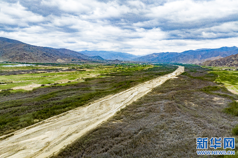 6月8日拍攝的隆子河谷兩岸的沙棘林(無人機(jī)照片)。新華網(wǎng) 旦增努布 攝