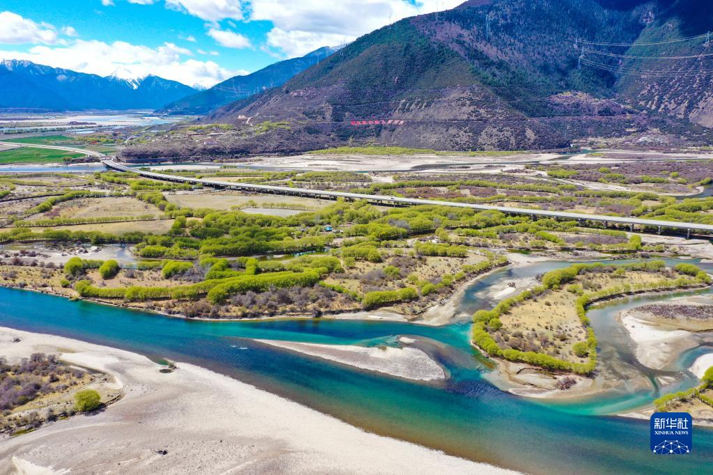 6月,明媚的陽光下,清澈的尼洋河迂曲回環(huán)。河中,沙洲綠樹蓬勃盎然,盡顯高原生態(tài)之美?!艾F(xiàn)在是一年當(dāng)中最好的季節(jié)。空氣清新、環(huán)境優(yōu)美,生活在這兒很舒服?!奔易⊙拍釢竦嘏缘奈鞑亓种ナ邪鸵藚^(qū)立定村村民央吉拉姆說。
