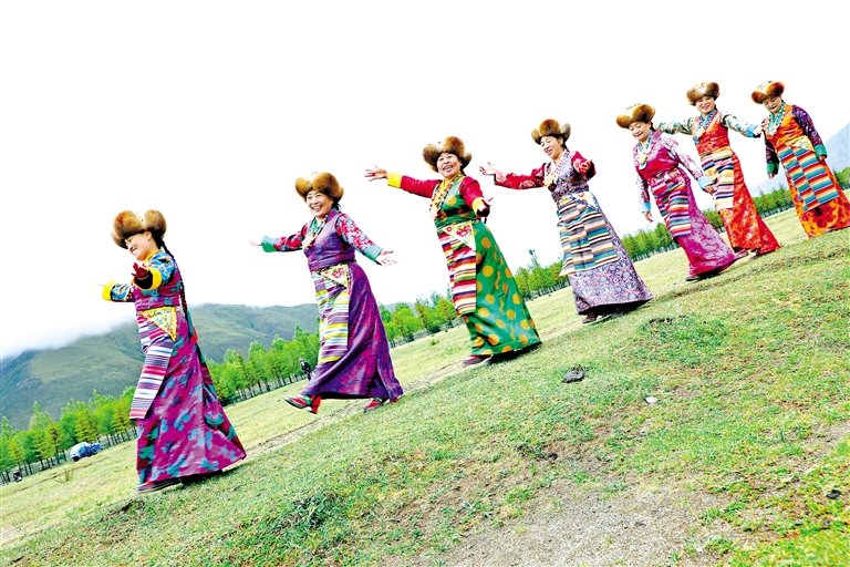 圖為群眾在排練朗瑪堆諧歌舞。記者 格桑倫珠 攝
