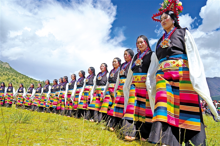 致富不忘感黨恩、致富不忘鄉(xiāng)親們。宗巴一心想為家鄉(xiāng)做點(diǎn)什么。在得知林周縣唯一一項(xiàng)自治區(qū)級(jí)非物質(zhì)文化遺產(chǎn)項(xiàng)目“熱振曲卓”面臨失傳危機(jī)后,為傳承和保護(hù)好這項(xiàng)民族文化遺產(chǎn),讓“熱振曲卓”能夠在新時(shí)代得到更好發(fā)展,她放棄了原來(lái)做得很好的生意,自掏腰包,邀請(qǐng)相關(guān)專家調(diào)研、組建團(tuán)隊(duì)查閱資料,走村串戶尋訪民間藝人,招募演員、聘請(qǐng)傳承人……重新組建了“熱振曲卓”表演團(tuán)隊(duì),為當(dāng)?shù)剞r(nóng)牧民群眾提供就業(yè)崗位。