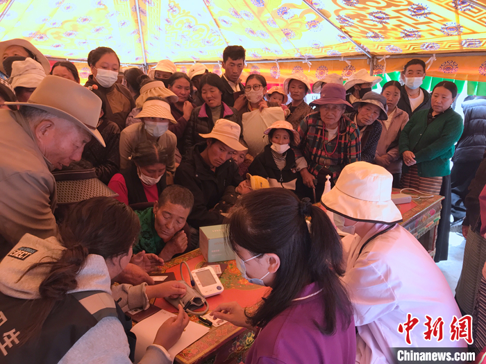 圖為7月10日,醫(yī)療專家在邊壩縣尼木鄉(xiāng)義診。 中新社記者 陳建新 攝