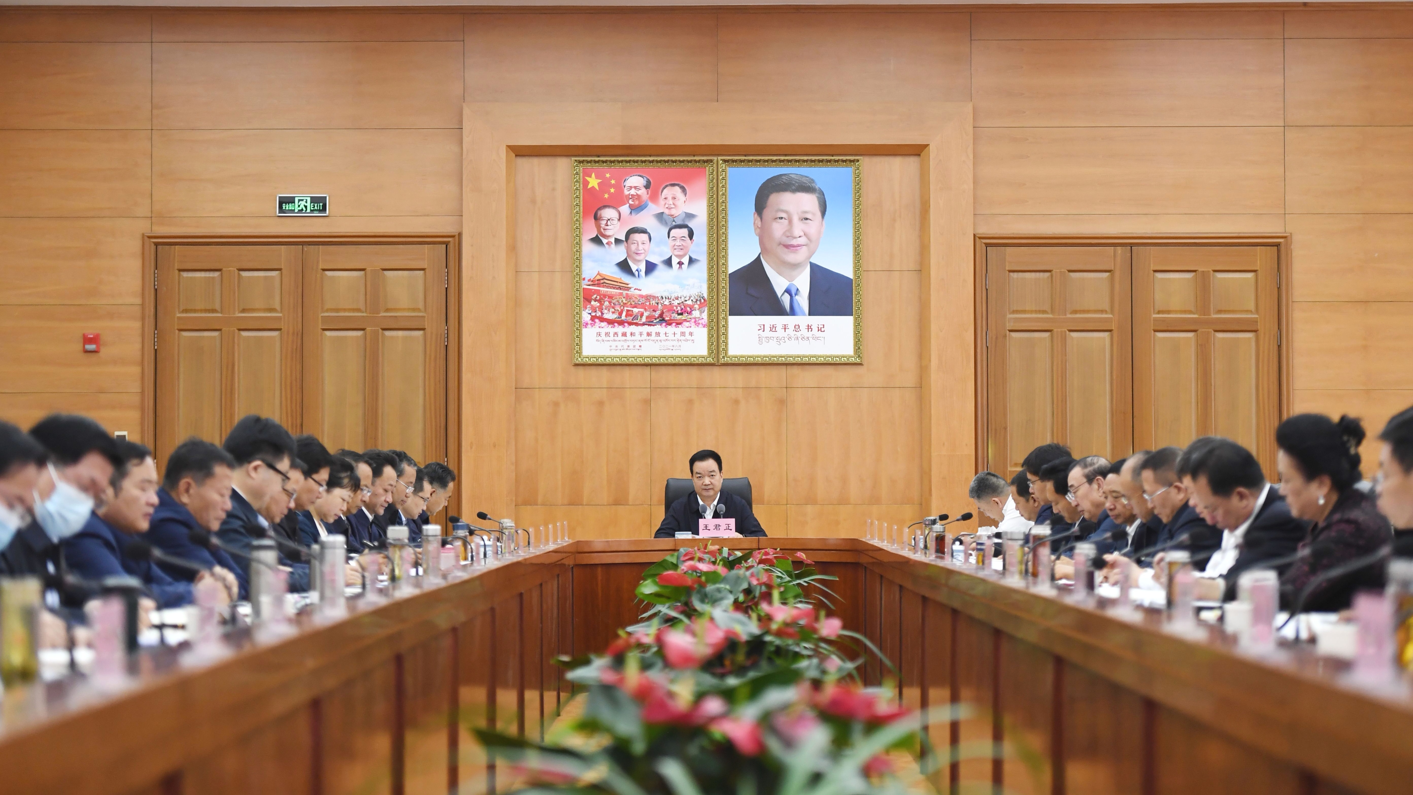中央第十二指導組副組長陳擎蒼到會指導。陳永奇、劉江、賴蛟、任維、普布頓珠、肖友才、達娃次仁等自治區(qū)領(lǐng)導參加。