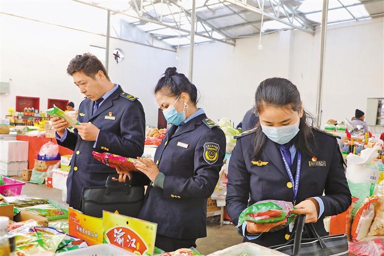 圖為阿里地區(qū)市場(chǎng)監(jiān)督局工作人員在菜市場(chǎng)進(jìn)行專(zhuān)項(xiàng)檢查。記者 永青 攝