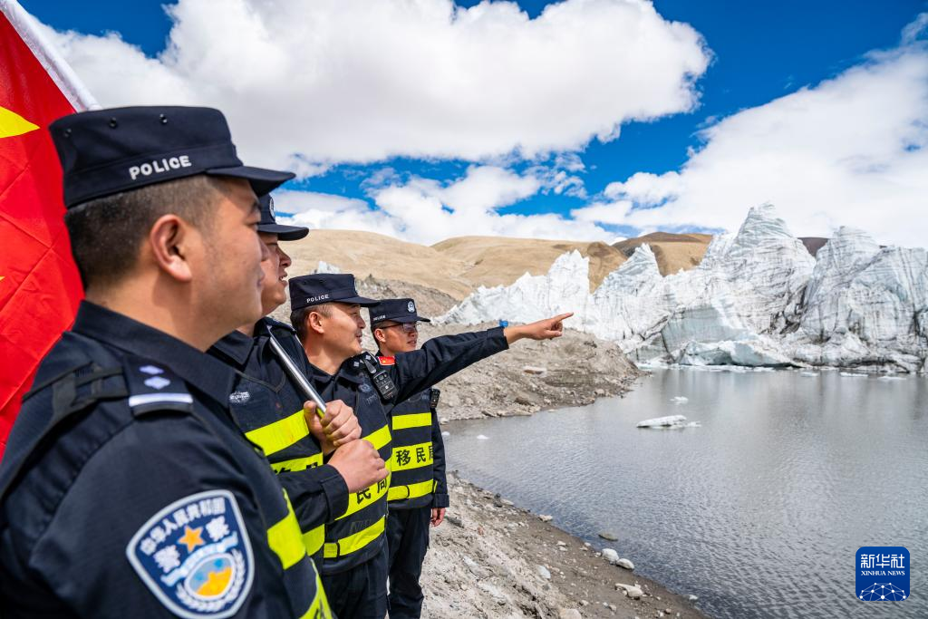 普瑪江塘邊境派出所的民警們?cè)趰彶急ǜ浇策墸?月4日攝)。新華社記者 孫非 攝