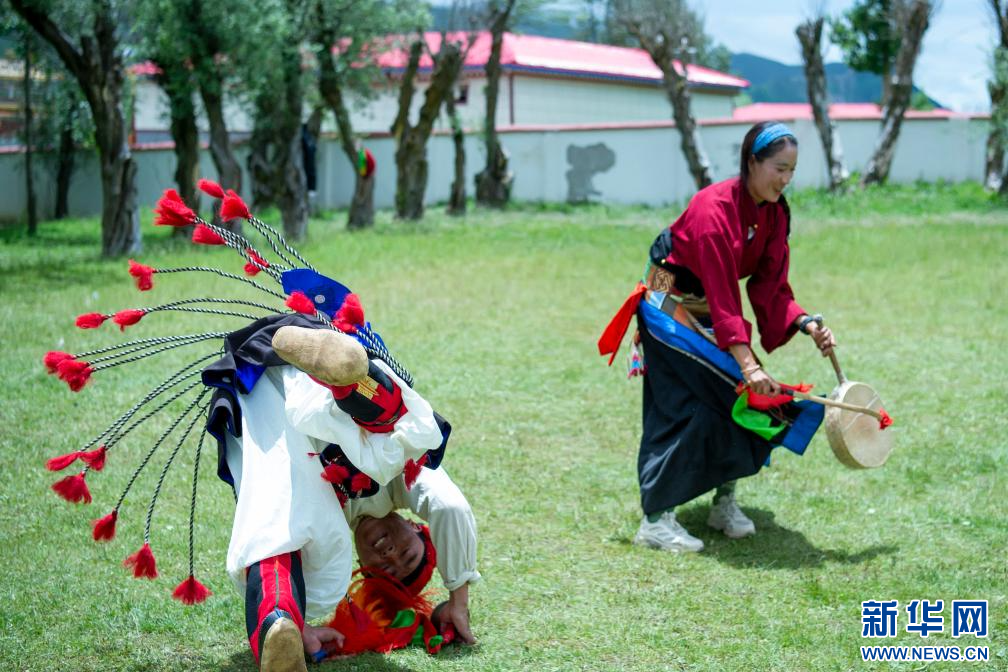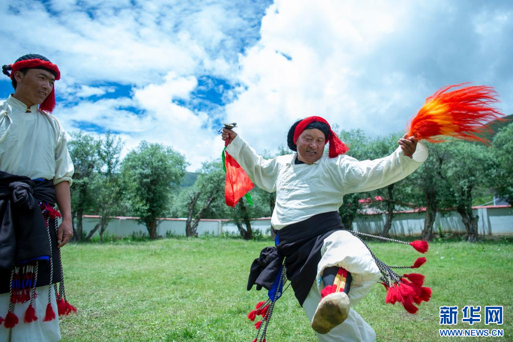 7月12日,西藏昌都市丁青縣尺犢鎮(zhèn)烏巴村文藝演出隊(duì)隊(duì)員在排練。 新華網(wǎng) 旦增努布 攝