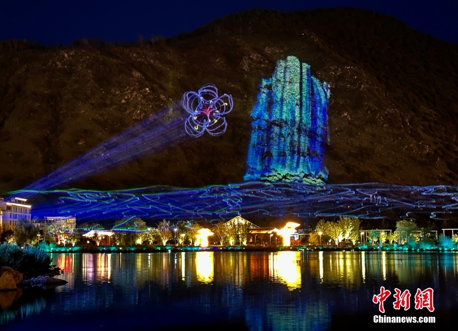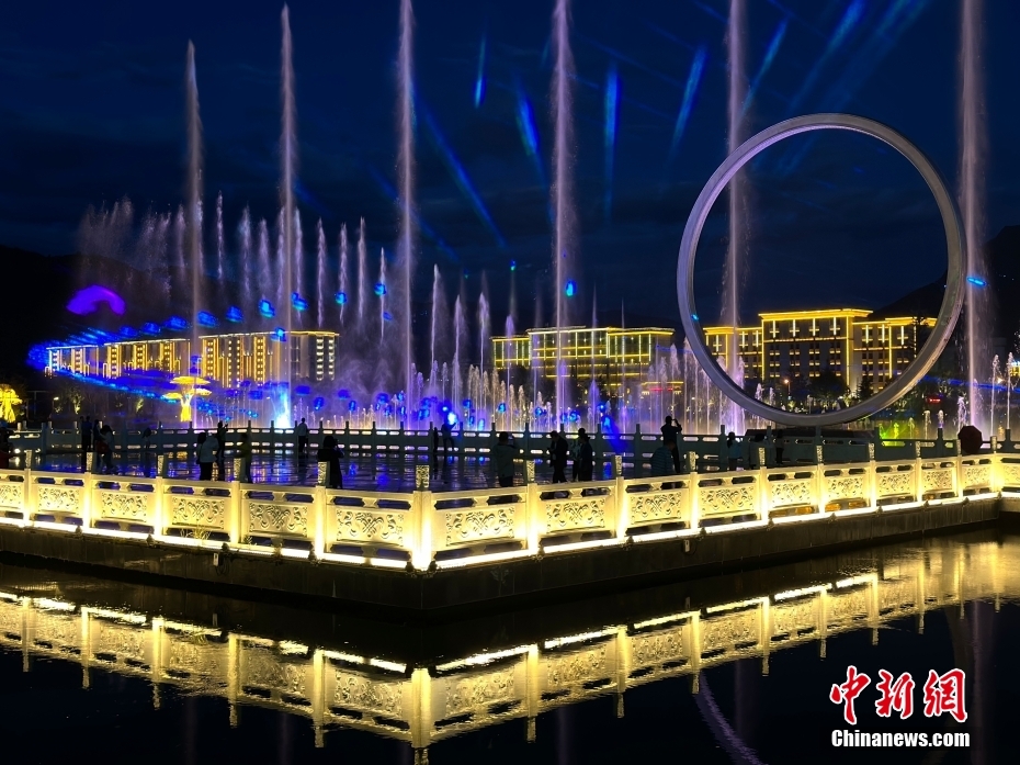 音樂(lè)水秀噴泉位于工布公園人工生態(tài)湖中。錢(qián)姣姣 攝
