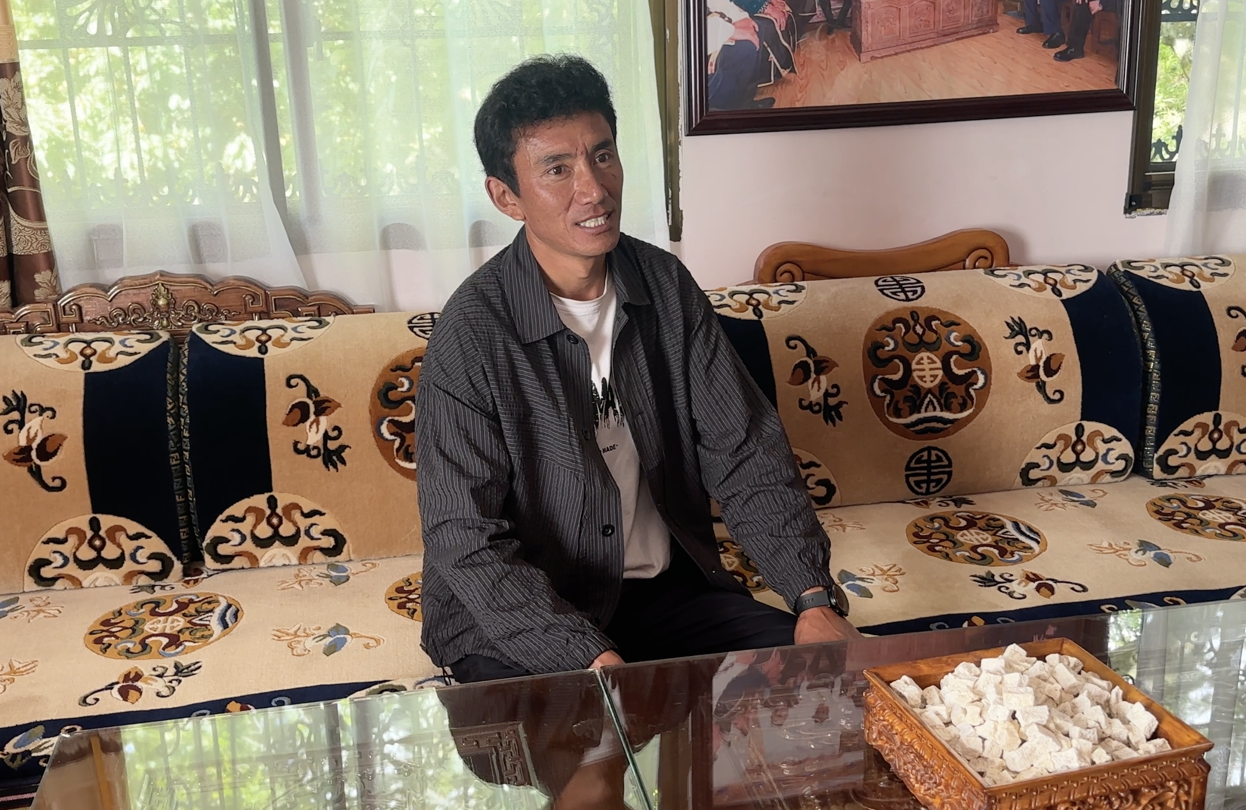 一位嘎拉村村民盛情邀請我們到家中坐坐。據(jù)了解,他叫達(dá)瓦堅參,今年39歲,是林芝本地人,以農(nóng)牧運輸為主業(yè),再加上種植養(yǎng)殖、土地流轉(zhuǎn)、桃花節(jié)分紅等收入來源,家里的年收入能達(dá)到30萬元。談到這里,達(dá)瓦堅參的臉上展露出幸福的微笑,“我對現(xiàn)在的生活很滿意”。未來他還計劃通過發(fā)展民宿,拓寬自己的收入渠道。