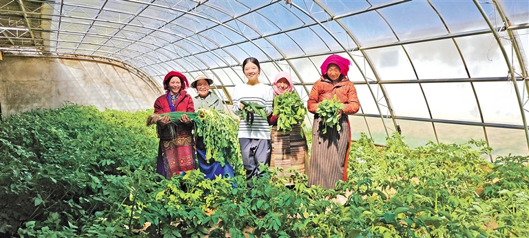 2017年,雙湖縣投建了11座蔬菜大棚。經(jīng)過當?shù)馗刹亢湍撩駛兣Ω藕托量嘣囼?,現(xiàn)在種植的蔬菜瓜果年產(chǎn)量可達4噸,每年給當?shù)啬撩袢罕姲l(fā)放蔬菜分紅和現(xiàn)金分紅共計12萬元左右,857人從中受益。(下轉(zhuǎn)第三版)(上接第一版)