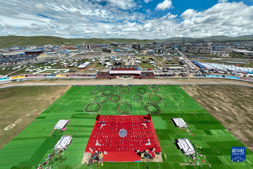 這是8月10日拍攝的開(kāi)幕式現(xiàn)場(chǎng)(無(wú)人機(jī)照片)。新華社發(fā)(旦增努布攝)
