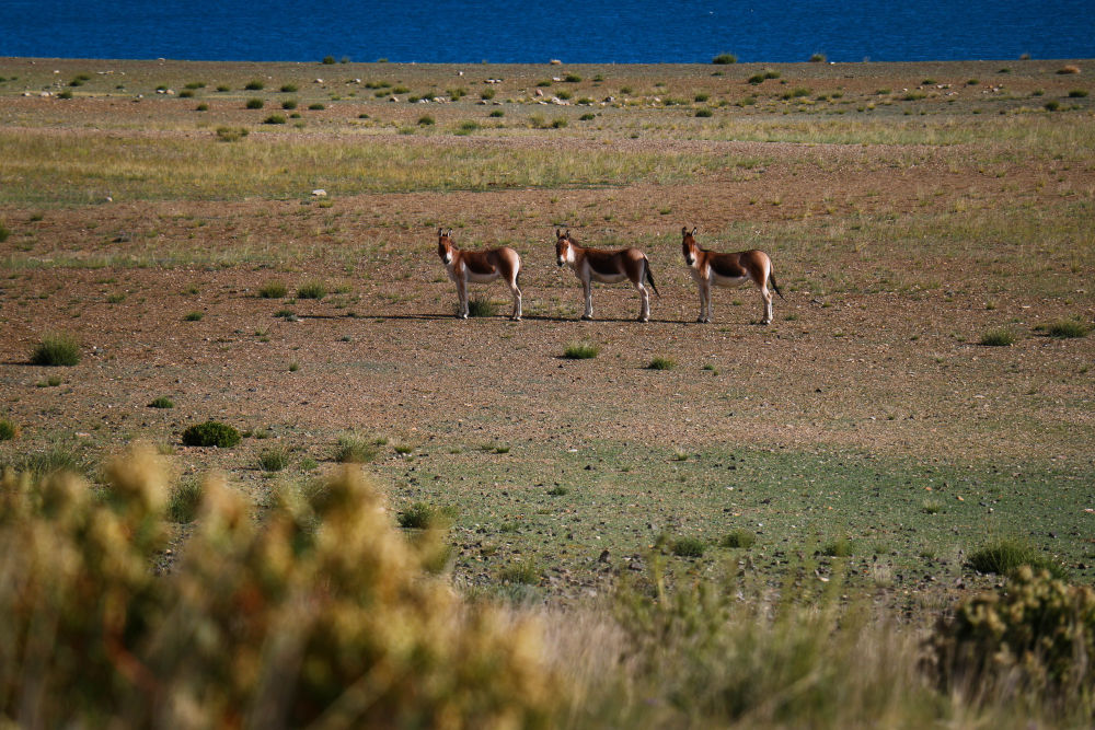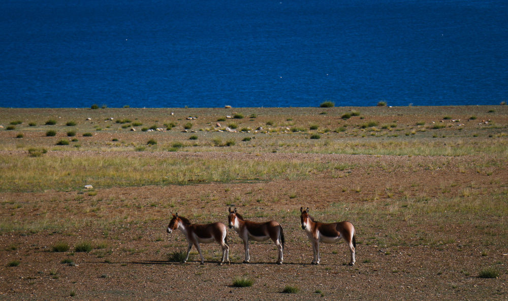 8月13日在西藏阿里地區(qū)普蘭縣拉昂錯(cuò)拍攝的藏野驢。新華社記者聶毅、曹檳攝影報(bào)道